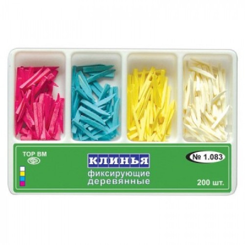 1.083 Клинья деревянные 4-х типов розовые/синие/белые/желтые (200шт), ТОР ВМ / Россия